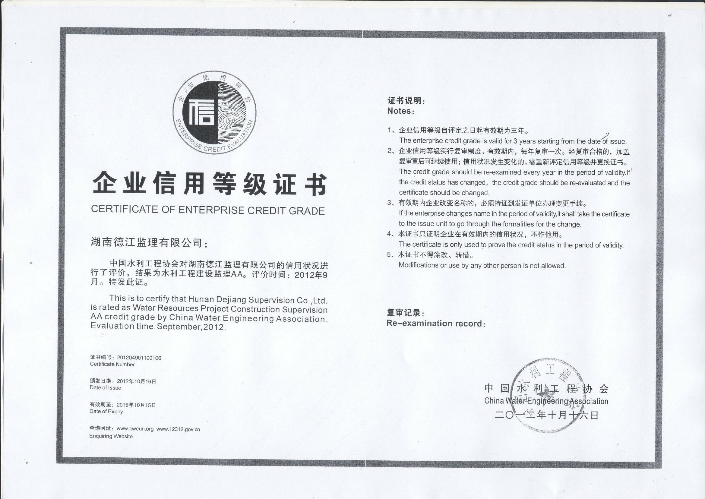 企業(yè)信用等級證書